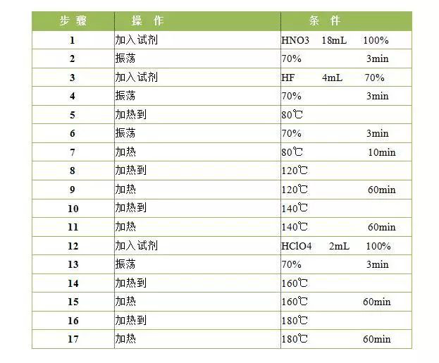 通過對方法的優化,可以將多種不同類別的樣本在同樣的條件下進行消解,大大提高了人員的操作效率,為批量樣品的檢測提供更好的解決方案。