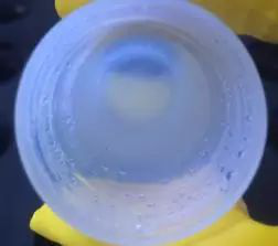 本方法綜合硝酸、氫氟酸和高氯酸進行消解,首先硝酸沸點是約120℃,因此選擇消化溫度為120℃左右,在此溫度下持續一小時,讓硝酸和樣品充分進行反應。HF是一種強腐蝕性的酸,適合硅基質樣品的消解,通常加入硝酸和高氯酸混合使用,所以本方法選擇加入硝酸之后隨即加入HF,升溫至80℃振蕩后再升溫至120℃進行消解,使樣品更好的發生飛硅作用,以利于SiF4的揮發溢出。最后使用強氧化劑高氯酸充分和有機物反應,再升溫至180℃,將高氯酸趕出。最終得到液體為乳白色液體,已經不含明顯顆粒,滿足消解的目的。消解終點如下圖所示,先加入適量的水,再進行過濾、定容后上機測定。